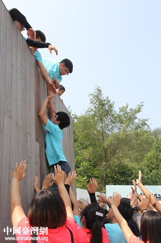 中国台湾网7月7日北京讯 (记者 李杰)7月6日,参加第十七届京台青年交流周的两岸青年大学生120人,来到了位于北京密云的北京国际青年训练营,进行了拓展训练,两岸青年学生通过共同努力完成训练项目,增进了交流和了解,并激发出创新意识和集体观念。