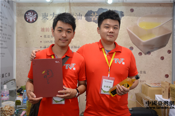 许登辉(右)此次主要来推介自己生产的苦茶油。(中国台湾网 李宁 摄)