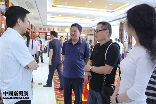 汾阳王酒业有限公司董事长王再武向台湾记者介绍企业发展情况。(中国台湾网 杨永青 摄)