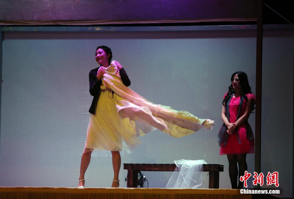 8月25日,演出现场。当日,台湾人气偶像音乐剧《怀疑爱 症候群》在昆明剧院演出,该音乐剧描述了一对即将步入婚礼殿堂的恋人,因试穿婚纱而引发的一系列矛盾与纠结,从而导致婚前恐惧症及情感危机的发生。据了解,该音乐剧于去年10月份完成了大陆近15个地方的巡演。该剧人气偶像云集,由台湾著名导演、票房大咖梁志民担任艺术总监,台湾师范大学表演艺术研究所所长何康国教授亲自担任制作人,更有台湾人气女星高慧君以及吴承璟等台湾剧场界新生代优秀演员们共同参与演出,可谓是星光熠熠。中新社记者 李进红 摄
