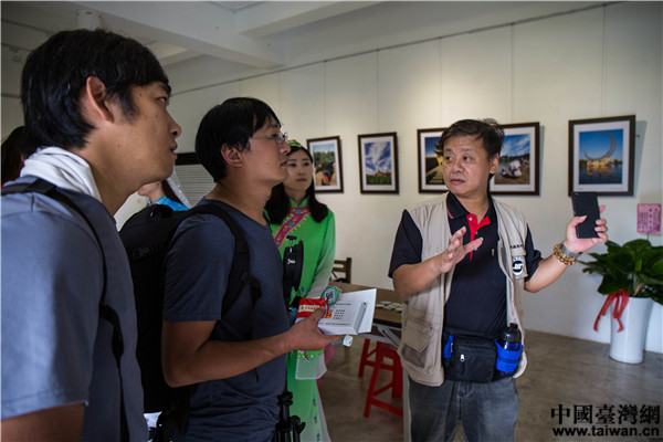 台湾摄影师向现场观众讲解摄影技巧。(中国台湾网 李岳 摄)