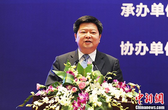 图为国台办副主任龙明彪在交流会上致辞。 中新社记者 安源 摄
