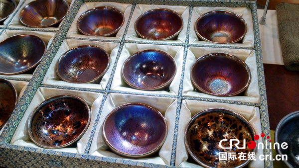 “鹿港窑”2010年开始制作曜变天目茶器等,成功打开大陆市场,本届文博会带来多组精美曜变天目茶碗及茶壶系列。