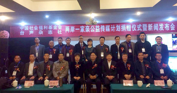 日前,“两岸一家亲”公益传媒计划捐赠仪式暨新闻发布会在江西宜春举行。本项目由中国社会福利基金会两岸一家亲基金、台声杂志社主办,江西南苑蓝浩文化传媒有限公司和山东众望文化传媒有限公司承办。中国社会福利基金会副秘书长缪瑞兰,中华全国台湾同胞联谊会顾问、江西省台联名誉会长何大欣,台声杂志社总编辑窦为龙、宜春市民政局副局长周声荣等,以及中央电视台、江西日报、宜春电视台等30多家媒体记者出席了新闻发布会。