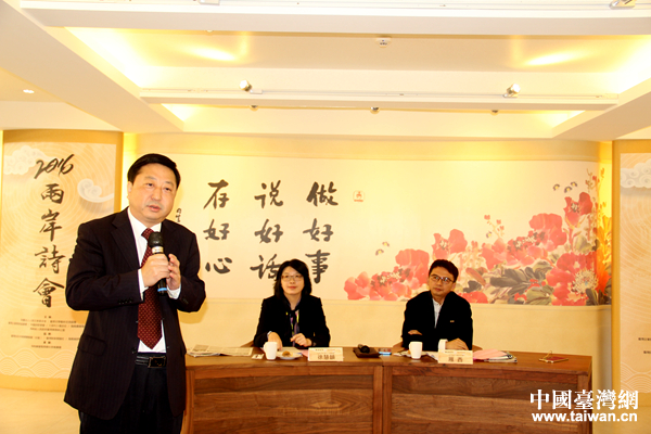 “新诗百年――两岸诗歌高端论坛”于18日上午举行,也拉开了此次两岸诗会活动的序幕。海南省台办主任刘耿、台湾佛光山佛陀纪念馆馆长如常法师、台湾文学艺术交流协会理事长陈万好在开幕式上致辞。