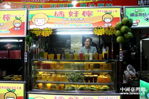中国台湾网12月19日海口讯 (记者刘畅)“我家在台北士林夜市旁边,拿自己家乡的东西出来卖,这感觉很棒!” 来自台北的29岁小伙廖信翰如是说 。他目前在海南两岸青年就业创业基地——泰龙城创业经营鲜榨果汁摊位“橘好柠”。