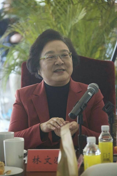 林文漪首先代表台盟中央向在京台湾乡亲致亲切问候和新春祝福。她认真听取了在京台资企业经营状况,并与香港恒丰集团主席、北京紫玉山庄房地产开发有限公司董事长黄紫玉,威盛集团副总裁、中国区行政长徐涛,中华海外联谊会副会长、北京育青食品开发有限公司董事长黄梅邨,北京台资企业协会荣誉会长、北京捷安特京商贸有限公司董事长林清发,北京台资企业协会副会长、天福集团副总裁曾明栋等在京台资企业代表人士就促进两岸经贸文化交流,助力台资企业在大陆发展等议题座谈交流。