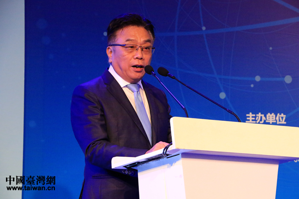 全国台企联荣誉会长郭山辉在开幕式上致辞。(中国台湾网 李岳 摄)
