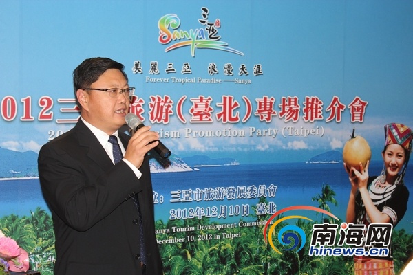 12月9日,三亚旅游推介会在台北市举行。三亚市副秘书长董永泉致辞(南海网记者马伟元摄)