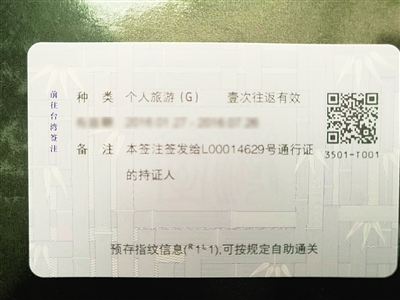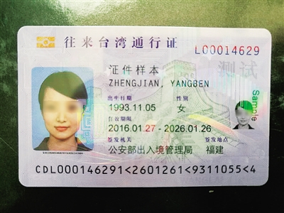 据了解,电子往来台湾通行证为参照有关国际标准设计制作的卡式证件,内嵌非接触式集成电路芯片。前往台湾签注不再采取贴纸的方式,而是直接打印在证件背面,并可重复擦写。成人电子往来台湾通行证有效期延长为10年,对未满16周岁的居民仍签发5年有效通行证。