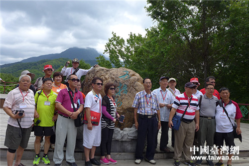 台湾网络媒体人在五指山合影。(中国台湾网 段雯婷 摄)