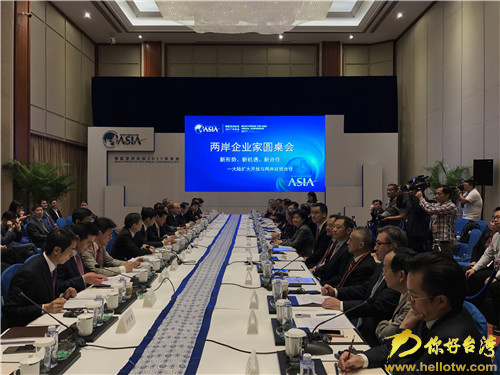 你好台湾网3月26日消息(记者 路炜)3月26日,博鳌亚洲论坛2017年年会举行“新形势、新机遇、新合作:大陆扩大开放与两岸经贸合作」两岸企业家圆桌会议,会议由海峡两岸关系协会会长陈德铭和两岸共同市场基金会最高顾问钱复共同主持,台湾两岸共同市场基金会荣誉董事长萧万长以及三十余位两岸知名企业家、专家学者等出席会议参与交流。