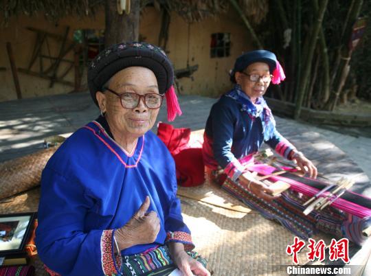槟榔谷景区里的纹身阿婆热情地向游客打招呼。薛文埔 摄 陈少婷 摄