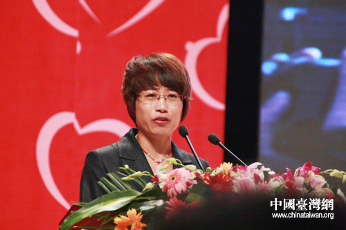 王红心在第六届“沧州好人”典型代表表彰大会上作事迹报告《奉献是一种幸福》。(中国台湾网 郜利敏 摄)