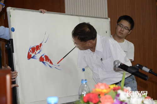 台湾知名口足画家谢坤山河北联大讲述逆境重生