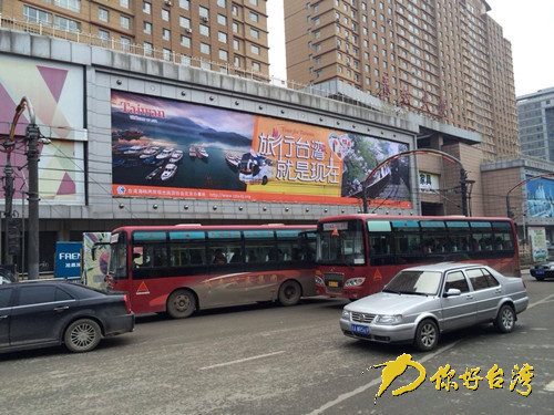 “旅行台湾就是现在”出现在石家庄闹市上(你好台湾网 图)