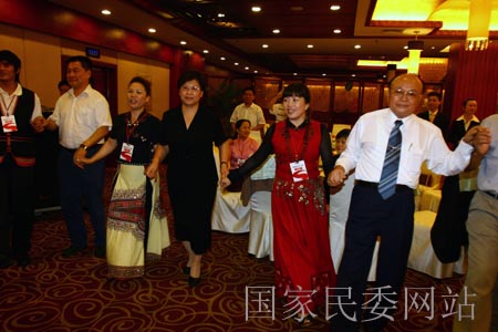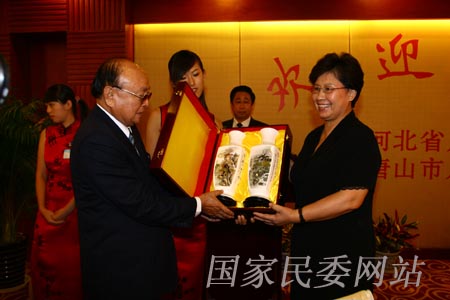 9月14日晚,河北省政府、唐山市政府在唐山市设宴欢迎前来参加第六届海峡两岸各民族中秋联欢活动的台湾少数民族代表团一行。全国政协常委、中华民族团结进步协会会长江家福,河北省副省长孙士彬,河北省民委主任张宝岩,唐山市副市长张羽,中华海峡两岸原住民暨少数民族交流协会理事长华加志,中华民族团结进步协会副会长兼秘书长赵保中等出席了欢迎晚宴。晚宴由河北省政府副秘书长李同亮主持。