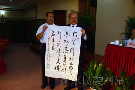 唐山市政府向台湾少数民族代表团赠送书法作品