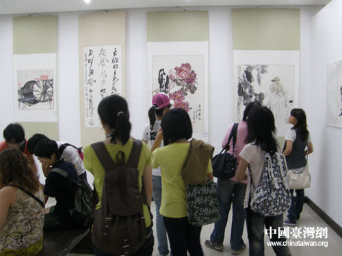 台湾青年学生参观洛阳画院作品展。图片来源:洛阳市台办