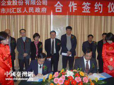 川汇区常务副区长安红月与台南企业股份有限公司董事长杨青峰正式签约。图片来源:周口市台办