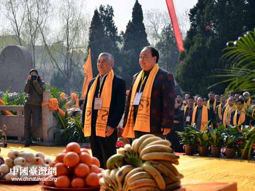 中国台湾网3月27日鹿邑消息 3月26日上午,全球李氏宗亲寻根拜祖大典在老子出生地鹿邑县太清宫太极殿前举行。来自全国各地及港、澳、台的180多名李氏宗亲代表参加拜祖大典。
