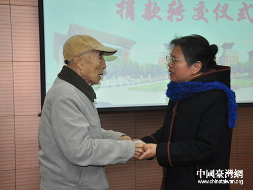中国台湾网12月17日郑州消息 日前,郑州成功学院举行向身患白血病的2005届学子杜枫同学捐款转交仪式。创办人王广亚博士在转交仪式现场捐赠了2万元现金,并代表成功学院和升达学院向杜枫亲属胡小拴女士转赠了两校师生共同募集的捐款116231.6元。