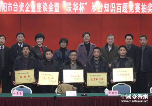 中国台湾网1月15日濮阳消息 日前,濮阳市“联华杯”涉台知识百题竞赛抽奖仪式在濮阳迎宾馆举行,现场抽取了一、二、三等奖及纪念奖共135名。省台办副主任杜春景,濮阳市委常委、统战部长王载文,副市长郭岩松,市委对台工作领导小组成员、各县(区)台办主任及部分台商出席抽奖仪式,特邀4名参赛群众代表参加仪式。