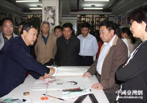 李沃源先生现场作画。(图片来源:漯河市台办)