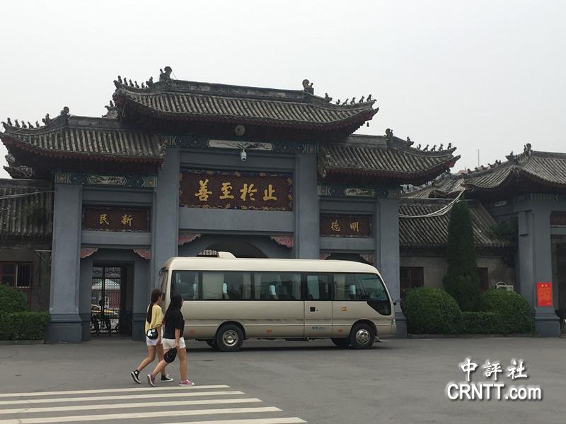 河南大学的牌坊,非常有历史风格。正面书“河南大学”,背面书“止于至善”。(中评社 徐梦溪摄)