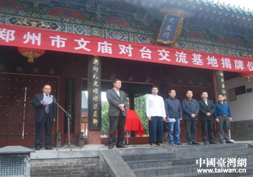 中国台湾网10月19日郑州讯 10月16日上午,郑州对台交流基地在管城区文庙正式挂牌。郑州市台办副主任唐国庆,管城区委常委、统战部长姚方海及海峡两岸青年发展联谊会许晋铭博士等台湾嘉宾出席挂牌仪式。