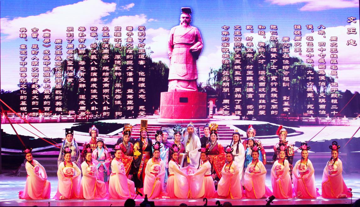 《羑里春秋》是一部以豫剧形式,演绎周文王被拘安阳汤阴羑里城内,推演《周易》64卦故事的历史文化剧目。在羑里城,周文王提出了"刚柔相对,变在其中"的朴素辩证法的观点,他用整整7年时间,著成《周易》一书。演职人员的精彩演出,淋漓尽致地展现了周文王自强不息的精神,引发全场观众阵阵掌声,深深感染了两岸的周易专家和学者。(中国台湾网、安阳市台办联合报道)