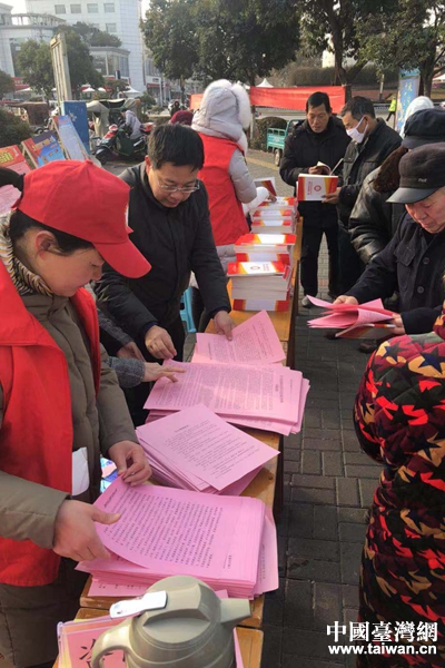 中国台湾网1月4日汝州讯 日前,为推进涉台教育工作,河南省汝州市开展涉台教育“进机关、进校园、进社区、进企业”宣传活动。