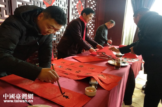 活动现场,驻马店市的书法家们纷纷将充满祝福的话语化作一副副春联,送给参与活动的台企负责人和台胞台属们,与他们共庆新春佳节。(中国台湾网、驻马店市台办、驻马店市台联联合报道)