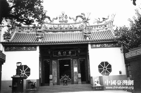台湾曹公庙,杂草丛生处为曹谨旧墓,圆圈内为曹谨新墓。