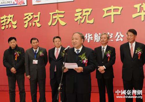 台湾华航集团总经理孙洪祥特地搭乘首航班机抵达武汉,参加在武汉天河机场举办的首航仪式。湖北省政协副主席陈春林、湖北省台办主任刘凯春及其他相关部门的负责人出席了首航仪式。