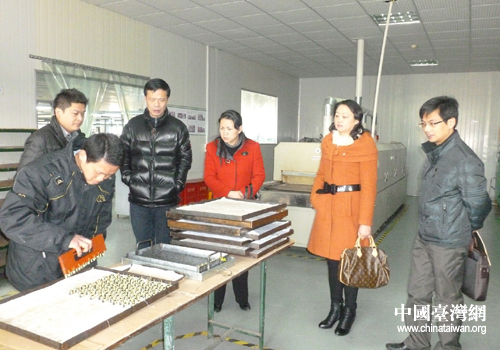 陈推一行在台企宏洋电子公司视察。(图片来源:黄石台办)