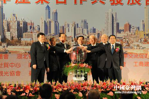 中国台湾网5月9日台北消息 5月8日上午,台湾湖北(武汉)周在台北圆山饭店隆重开幕。湖北和台湾各界精英同聚一堂,共同见证鄂台交流合作和两岸和平发展的重要盛会。中国国民党荣誉主席连战、吴伯雄,海基会董事长江丙坤,工业总会理事长许胜雄等出席开幕式。