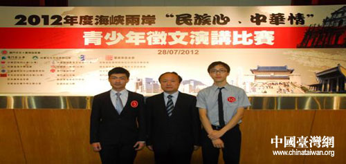 中国台湾网8月3日武汉消息 2012年7月27日—30日,由澳门辛亥·黄埔协进会主办,武汉海峡两岸交流促进会、台湾中华四海同心会、南京中山陵园管理局等17家单位协办的第6届海峡两岸“民族心、中华情”青少年征文演讲比赛总决赛在澳举行。市台办主任、武汉海峡两岸交流促进会会长金伟成带队参加活动。