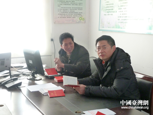 中国台湾网1月10日襄阳消息 日前,湖北省襄阳市台办购买《十八大报告》和《党章》各40本,赠送给谷城县天子沟、石门、将军山、土桥沟四个驻点联系村,襄阳市台办副主任赵文忠每到一处分别与村干部学习党的十八大报告中关于新农村建设和加快农民增收步伐的内容,并与村干部共同学习新党章。(中国台湾网襄阳市台办通讯员 崔有理)