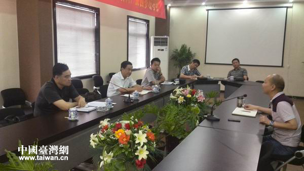 襄阳市财政局副局长王天宝与襄阳台商工业园负责人座谈。(图片来源:襄阳台办)