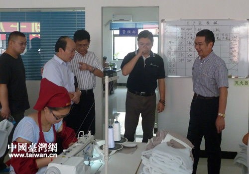 中国台湾网8月7日襄阳消息 日前,湖北省台办副主任涂阳斌一行到襄阳走访调研,对襄阳市开展“千名干部进台企、倾情服务促发展”活动和2012年涉台园区奖励扶持资金使用情况进行督办检查,并就省台办开展群众路线教育实践活动征求意见。调研组先后深入到湖北襄诚鞋业有限公司、湖北雅姿服饰有限公司等台资企业车间和台商工业园,了解企业生产经营情况。