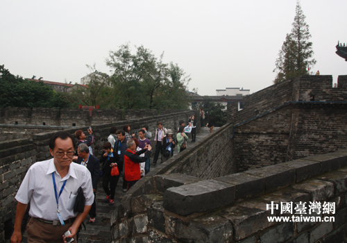 两岸新媒体荆楚行采访团来到古城墙内。(中国台湾网 段雯婷 摄)