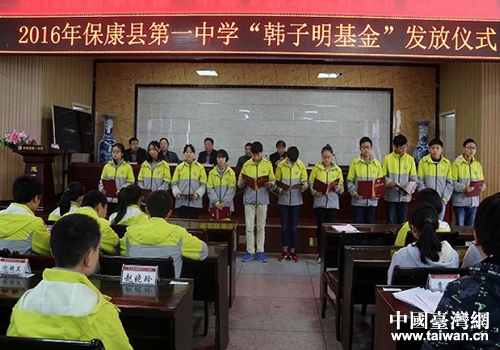 目前,“韩子明基金”奖助学对象为保康一 中学生,奖助学项目包括:第一名奖(各班成绩 最优者)、学业进步奖(各班进步前10名)、单项优异奖(在文体、服务等方面表现特别优秀者)等。同时,对家境贫寒、学业中等、有进取心的学生进行鼓励式奖励。(中国台湾网襄阳保康通讯员 童光辉 詹大凤)