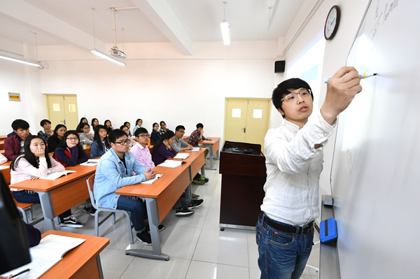 黄志伟在湖北经济学院给学生上课。新华社记者 程敏 摄