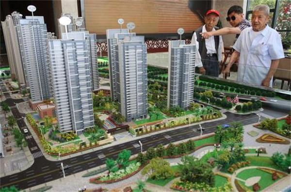 两位老人在项目沙盘里寻找自己曾经的家。(摄影:王虎)