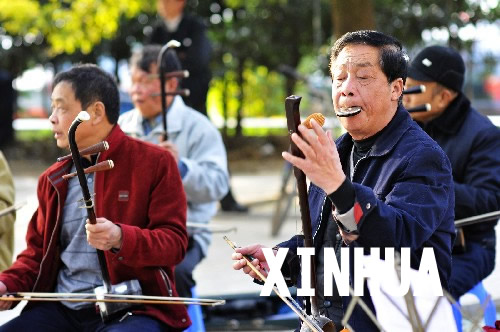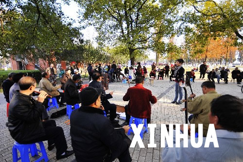 12月9日,演出队成员在宜昌滨江公园小广场上演奏。 这支演出队由退休职工和文艺爱好者自发组成,常年在湖北省宜昌市滨江公园开展“群艺广场”活动,成为了公园里一道亮丽的风景线。 新华社发