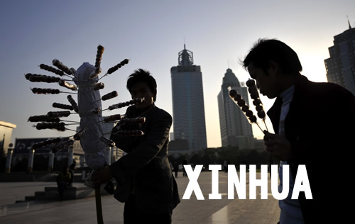 一位游客在武汉市洪山广场买糖葫芦(12月8日摄)。新华社记者 郝同前摄