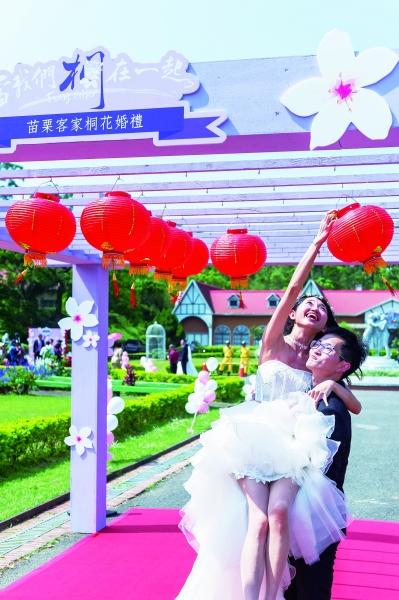 苗栗县县长徐耀昌和夫人蔡丽卿与66对新人一一合影并送祝福。婚礼开始后,新人们依序行传统婚礼仪式:丢扇子、添灯、喝交杯喜茶、互喂麻薯饼等,寄寓从此以后丢掉坏运气,家族添丁枝繁叶茂等美意。