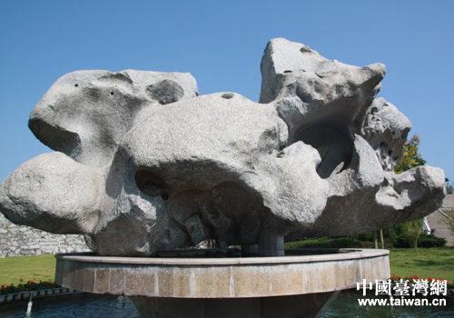 万年江底奇石,重达20多吨,经地质专家考证距今已有8亿年的历史,是三峡建设者从二期围堰基坑中挖出。(中国台湾网 段雯婷 摄)