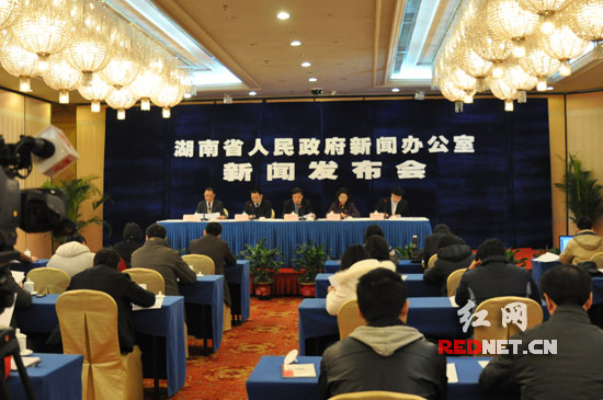 红网长沙1月14日讯(记者 谢伦丁 实习生 卢靖 摄影 明健飞)湖南省政府今天在通程大酒店召开新闻发布会,通报2010年的省级经贸活动安排。